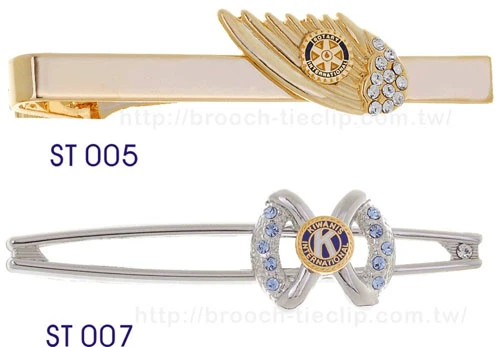 領帶夾ST005-ST007的領帶夾訂製主體材質採用進口高級亮面銅沖壓製成,扶輪社和同濟會LOGO是進口銅製軟琺瑯高級作法圖案可定做更換,領夾上合金飾品客戶也可以自行設計圖案造型翔聆幫您請銀樓打版師傅手工打版訂製,製作領帶夾皆經表面研磨處理,粗拋光及細拋光三道拋光過程,再用飾品高級電鍍金或白K維持領夾的品質,加上施華洛世奇系列飾品專用奧地利製16切割面奧登水鑽,使領帶夾ST005-ST007成為最高尚人見人愛的贈品及紀念品